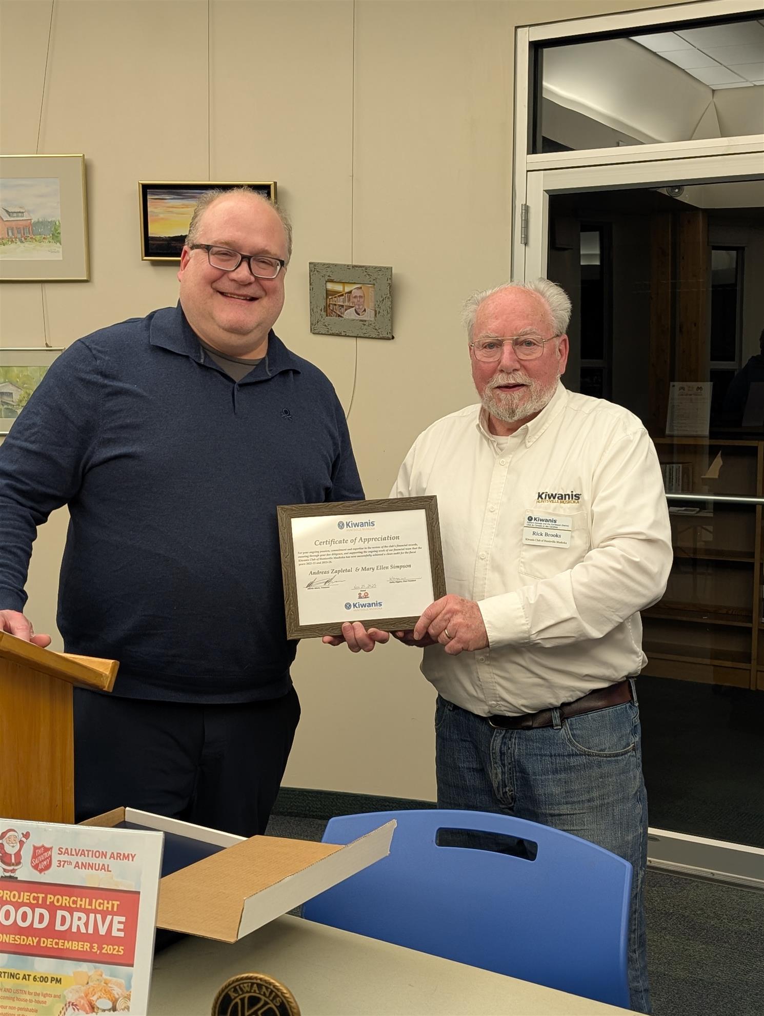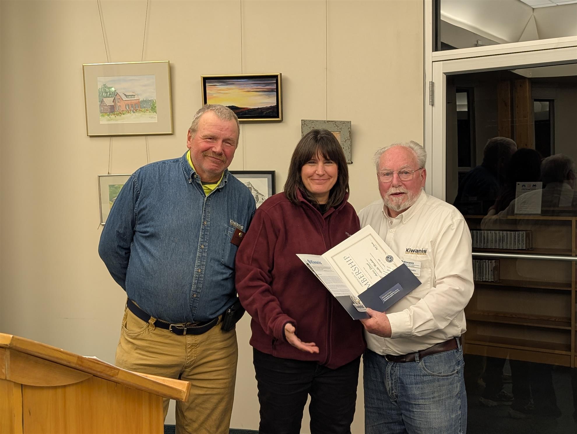 Andrée Stenzel and Jan Stainer-White received their official Kiwanis documentation and K-Pin. Welcome to the K-Family!!